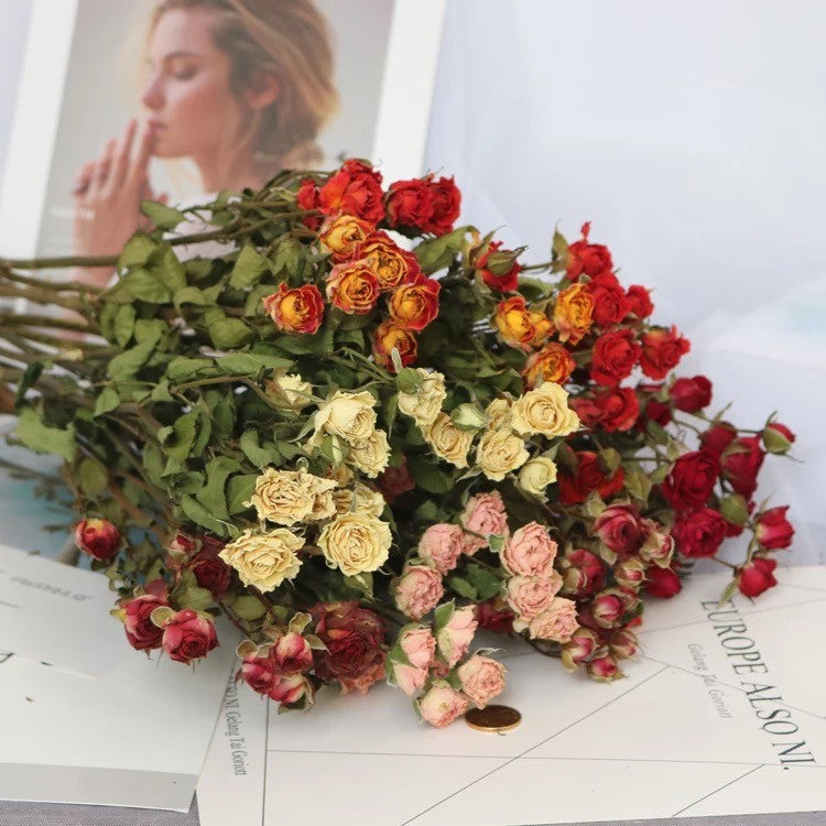 Dried Rose Flower Bouquet, Natural Dried Rose Flower Bunches, A Bouquet of Dried Rose Flowers, A Bunch Dried Rose Flowers, Red Yellow Purple Dried Rose Floral