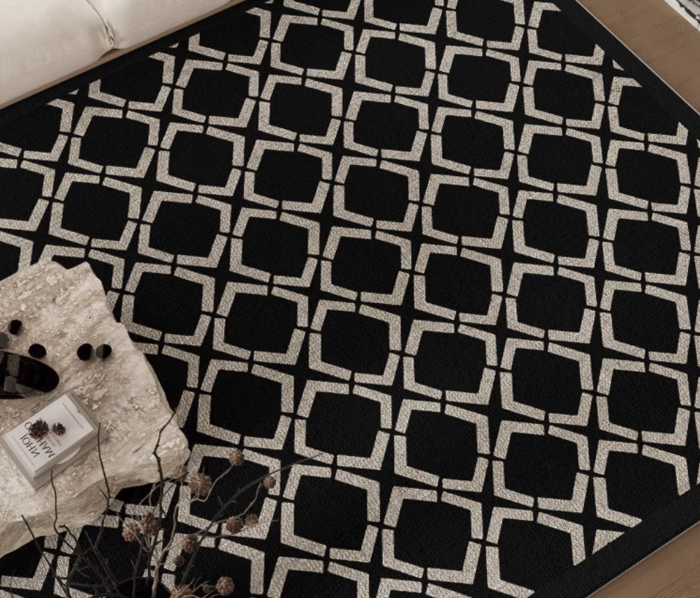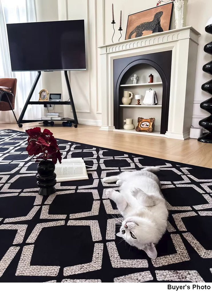 Modern Black Rugs for Living Room, Abstract Contemporary Rugs for Bedroom, Modern Area Rugs under Sofa, Dining Room Floor Rugs, Modern Carpets for Office