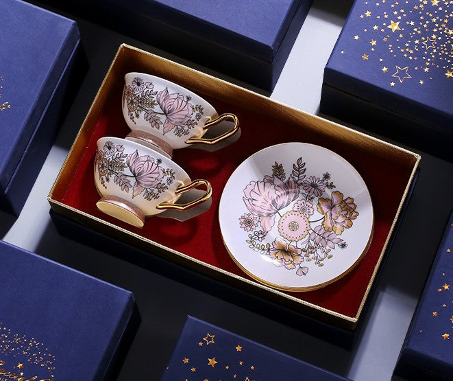 Afternoon British Tea Cups, Unique Iris Flower Tea Cup and Saucer in Gift Box, Elegant Ceramic Coffee Cups, Royal Porcelain Tea Cup Set-Silvia Home Craft