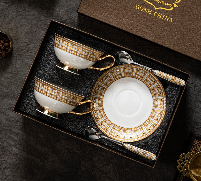 Porcelain Tea Cup Set for Office, Yellow Ceramic Cups, Elegant British Ceramic Coffee Cups, Unique Tea Cup and Saucer in Gift Box