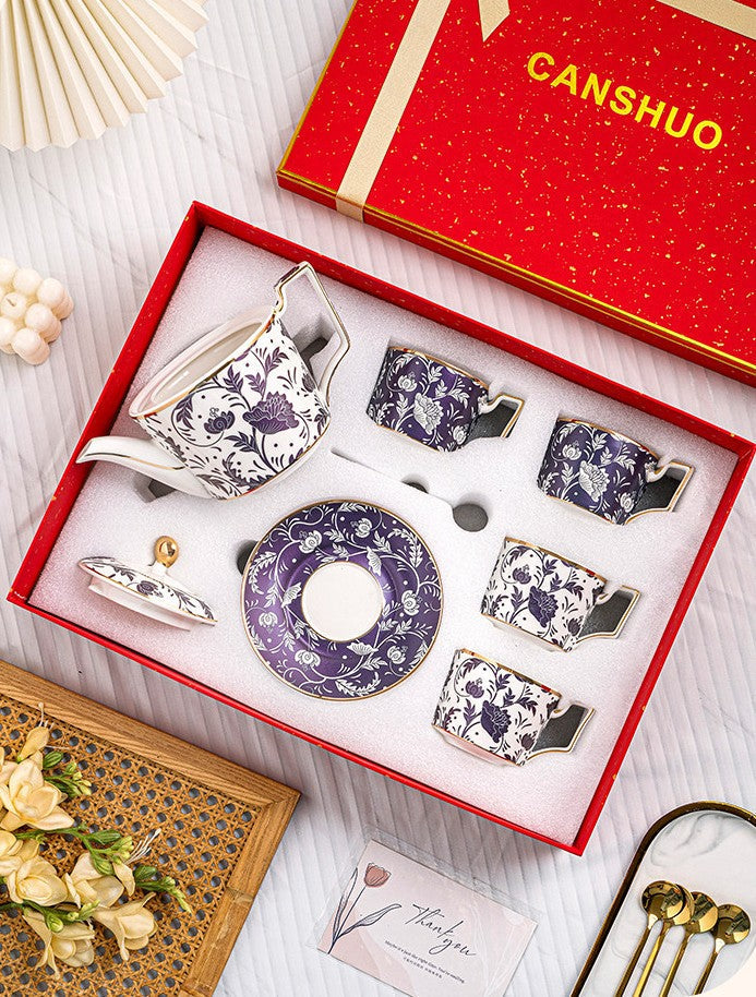 This Tea Cup Set includes 4 Tea Cups, 4 Saucers, 4 Spoons and 1 Teapot