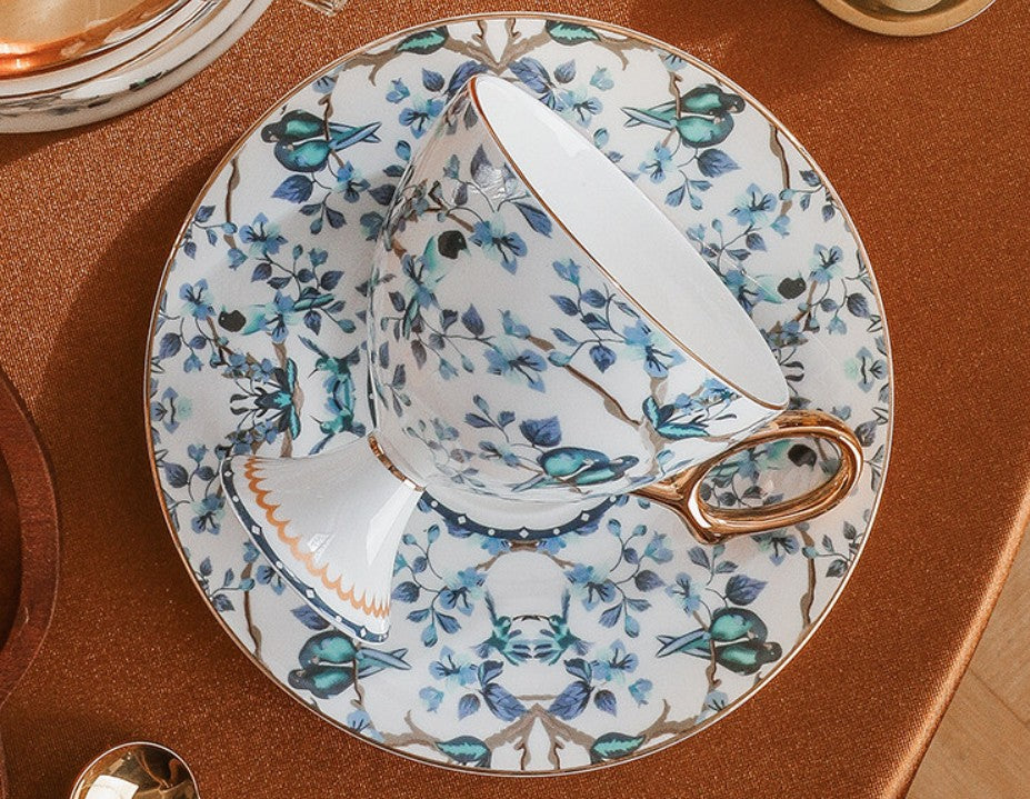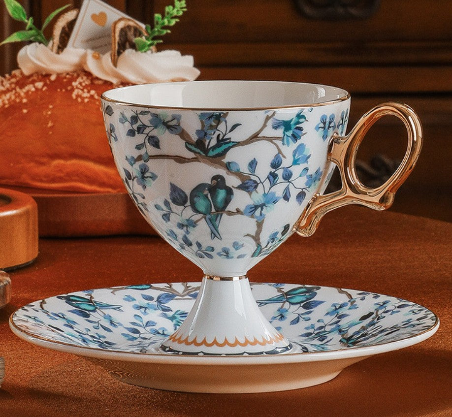Ceramic Tea Cups and Saucers in Gift Box, British Tea Cup set, Elegant Ceramic Coffee Cups, Creative Porcelain Tea Cup Set and Saucer-Silvia Home Craft
