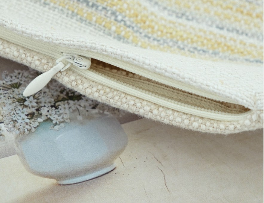 All pillow covers are sewn professionally, over-locked with finished edges to prevent fraying and has invisible zipper enclosures. This provides long lasting, durable covers that will stay straight and beautiful over time, which makes for a clean professional look.