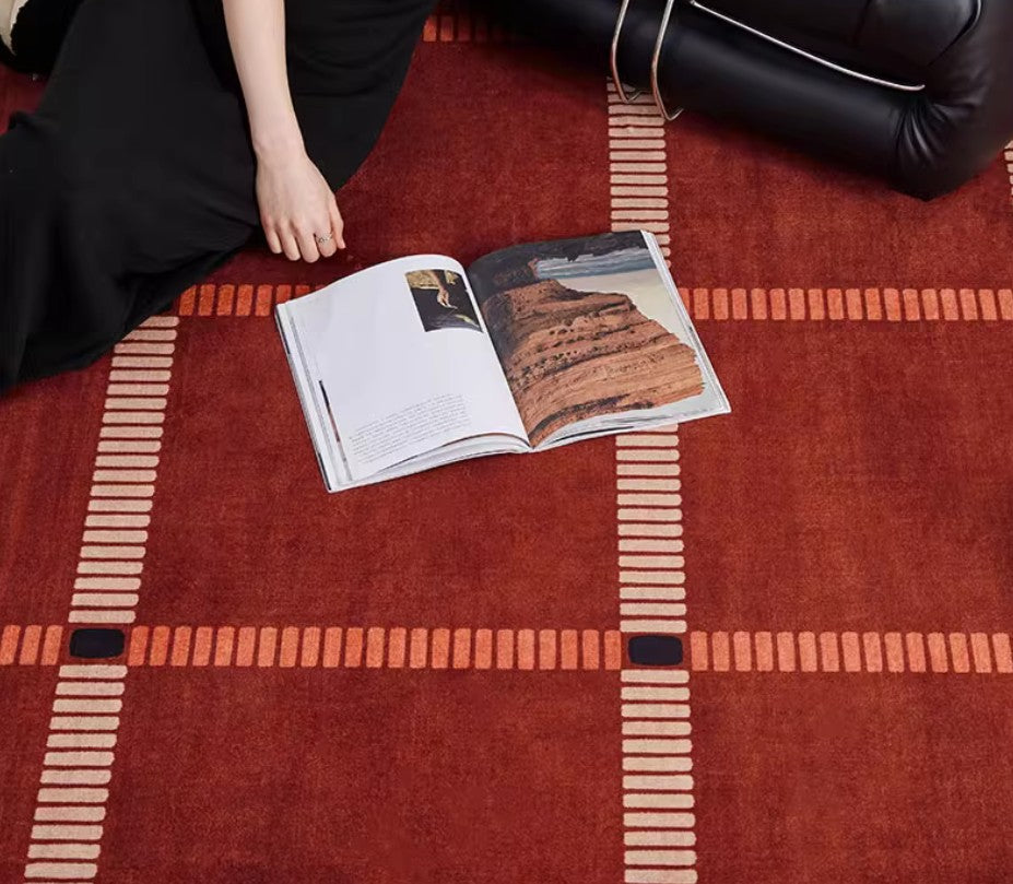Contemporary Modern Carpets Next to Bed, Abstract Red Rugs for Living Room, Mid Century Area Rugs, Red Modern Rugs under Dining Room Table
