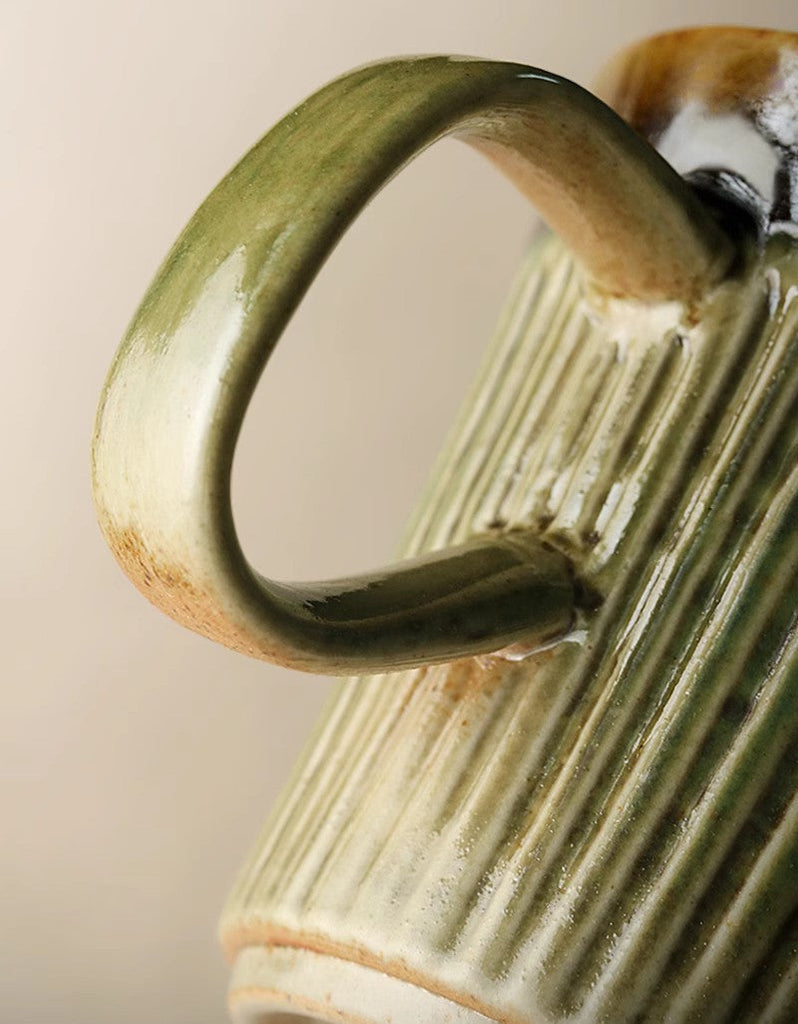 Creative Brown Green Ceramic Coffee Mugs, Unique Coffee Mugs, Large Modern Handmade Pottery Coffee Cup, Large Capacity Coffee Mugs
