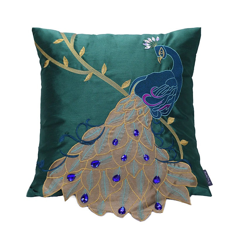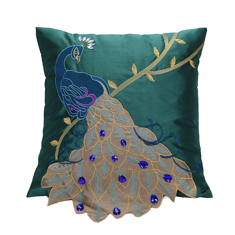 Decorative Sofa Pillows, Decorative Pillows for Couch, Beautiful Decorative Throw Pillows, Green Embroider Peacock Cotton and linen Pillow Cover