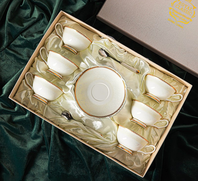 Elegant British Ceramic Coffee Cups, Porcelain Coffee Cup Set, White Ceramic Cups, Unique Tea Cup and Saucer in Gift Box