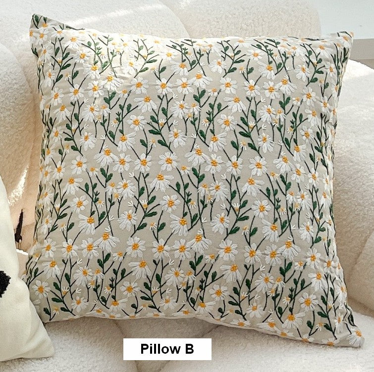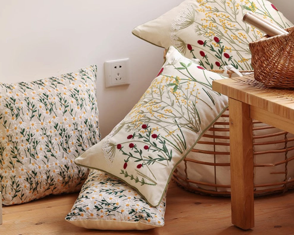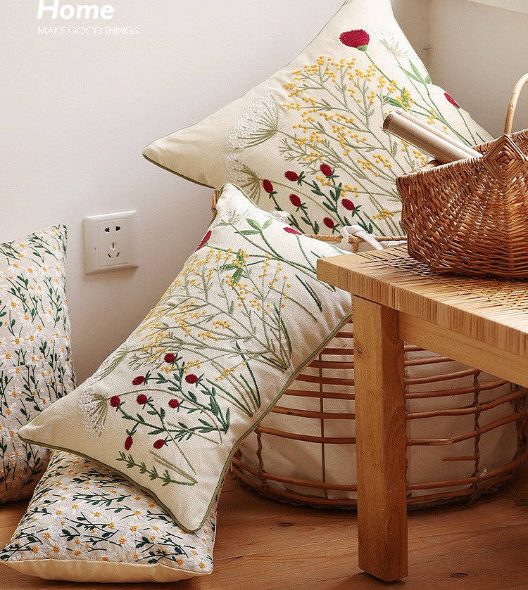 Farmhouse Decorative Pillows for Sofa, Embroider Flower Cotton Pillow Covers, Spring Flower Decorative Pillows for Bedroom, Decorative Pillows for Couch