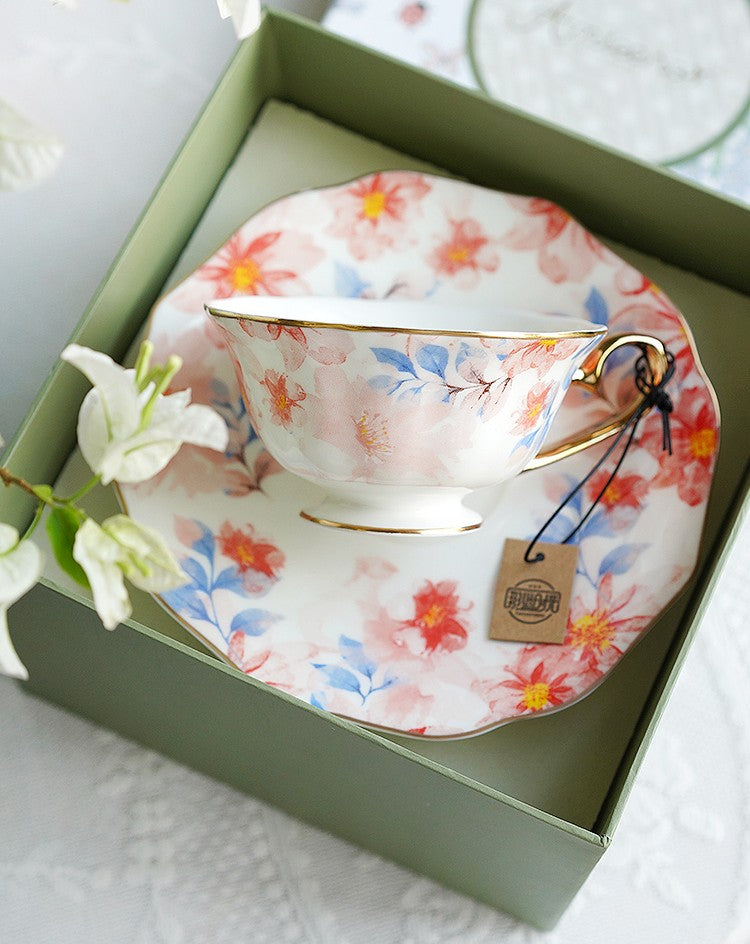 Flower Porcelain Tea Cup Saucer Set, Unique Tea Cup and Saucer in Gift Box,British Royal Ceramic Cups for Traditional Afternoon Tea, Elegant Ceramic Coffee Cups