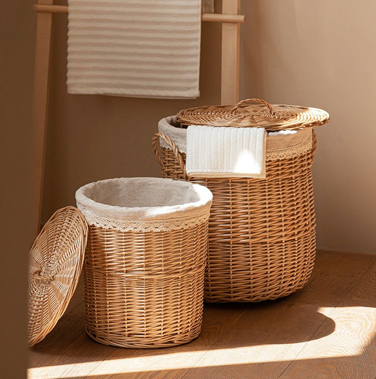 Hand-woven Wicker Storage Basket for Clothes, Large Round Storage Basket for Clothes, Willow Weaving Baskets for Clothes, Extra Large Kitchen Storage Baskets