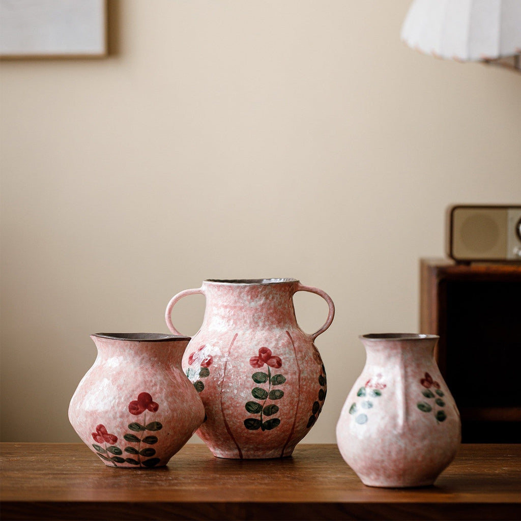 Handmade Water Holding Flower Vases, Rustic Pottery Flower Vases, Small Flower Vases on Table, Pink Bud Vases-Silvia Home Craft
