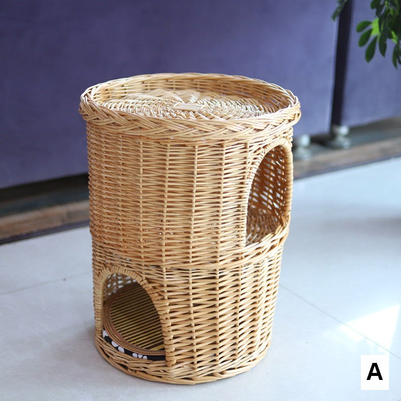 Large Cat House Basket with Washable Cushion for Indoor Cats and Dogs, Triple-Layer Cat Bed