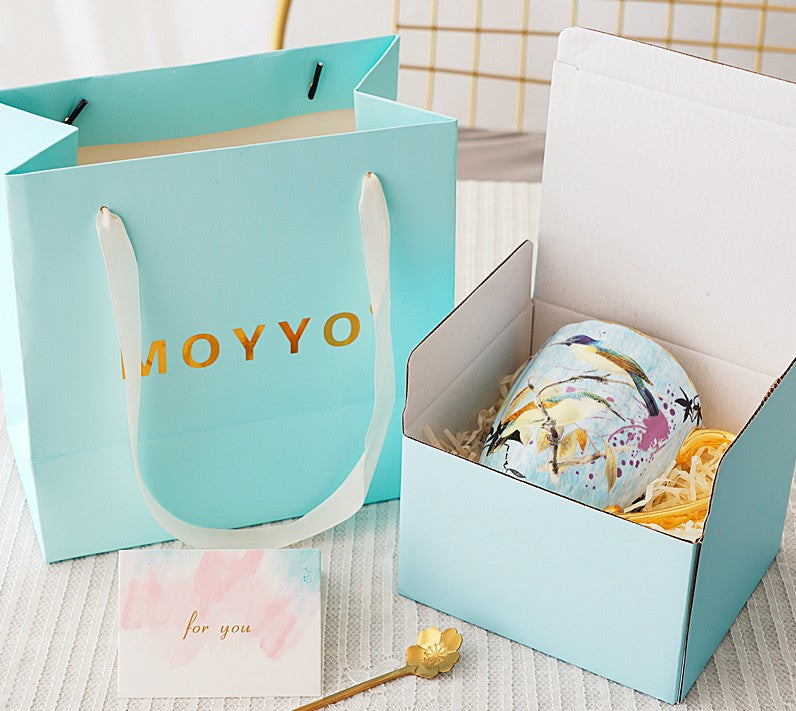 Large Creative Porcelain Mug, Elegant Blue Ceramic Coffee Mug, Beautiful Bird Flower Ceramic Mug, Large Capacity Ceramic Mugs for Office