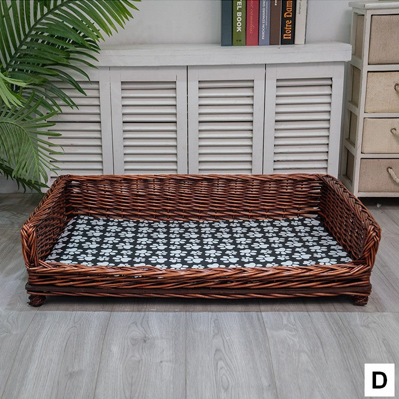 Large Hand Woven Rattan Cat Beds, Extra Large Natural Wicker Dog Bed with Washable Cushion for Indoor Cats and Dogs