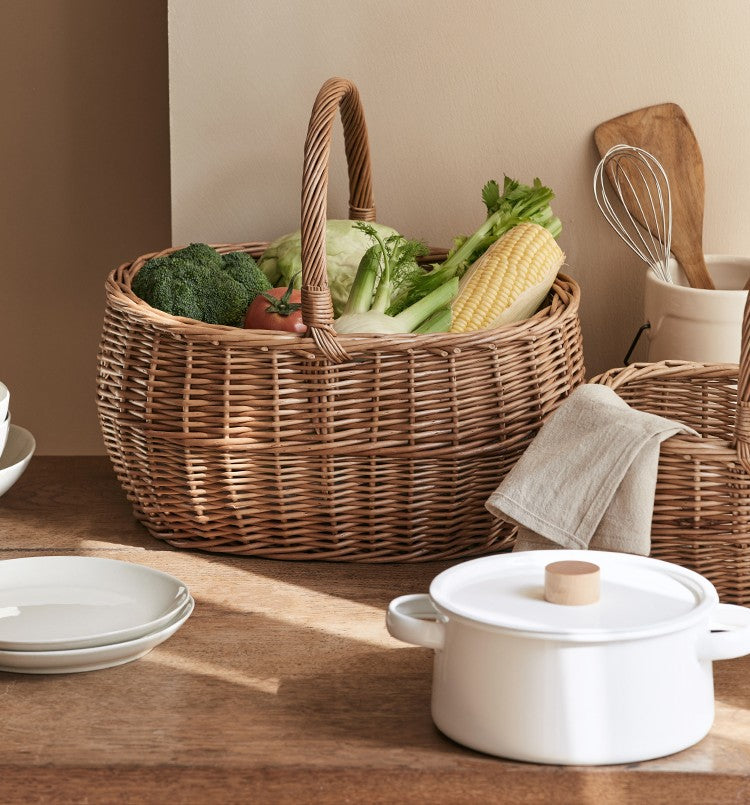 Natural Hand-woven Wicker Storage Basket, Large Picnic Food Basket with Handle, Willow Weaving Baskets for Vegetable, Natural Fruit Basket, Kitchen Storage Baskets