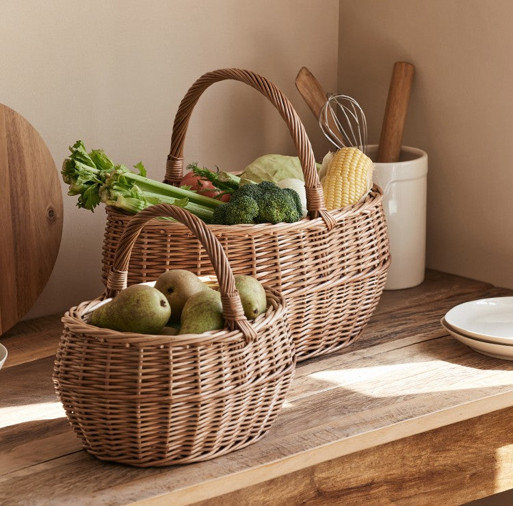 Large Picnic Food Basket with Handle, Natural Hand-woven Wicker Storage Basket, Willow Weaving Baskets for Vegetable, Natural Fruit Basket, Kitchen Storage Baskets