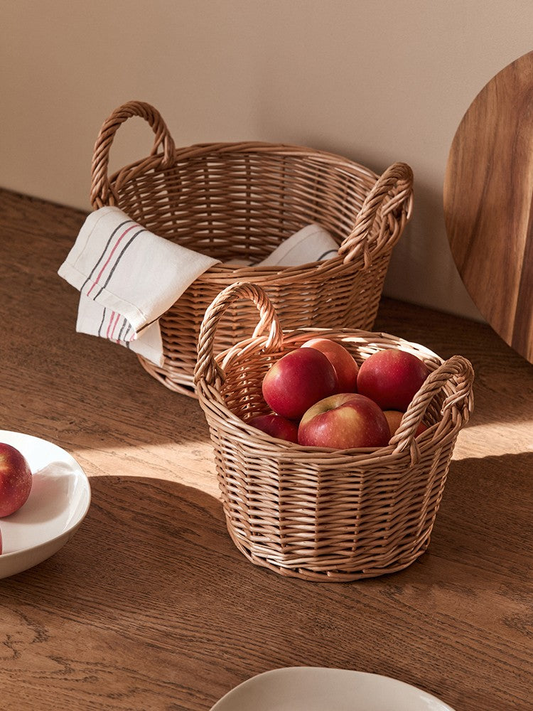 Large Picnic Fruit Basket with Handle, Natural Hand-woven Wicker Round Storage Basket, Lovely Willow Weaving Baskets for Vegetable, Natural Fruit Storage Basket, Kitchen Storage Baskets