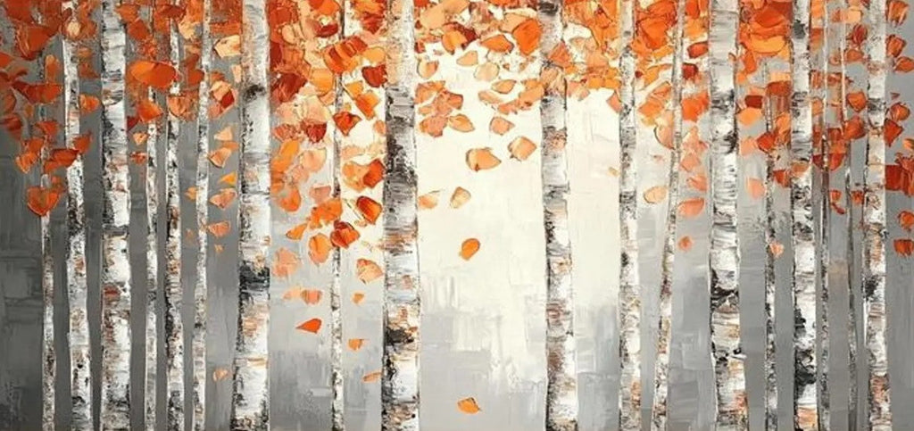 Large Wall Art for Bedroom, Modern Paintings for Living Room, Acrylic Painting on Canvas, Palette Knife Canvas Art, Autumn Birch Tree Painting, Original Canvas Art
