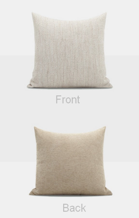 All pillow covers are sewn professionally, over-locked with finished edges to prevent fraying and has invisible zipper enclosures. This provides long lasting, durable covers that will stay straight and beautiful over time, which makes for a clean professional look.