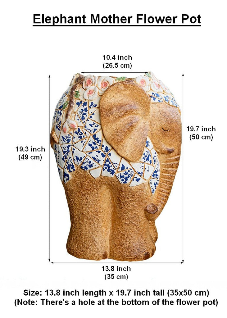 Elephant Mother Flower Pot: 13.8 inch length x 19.7 inch tall (35x50 cm) - Medium