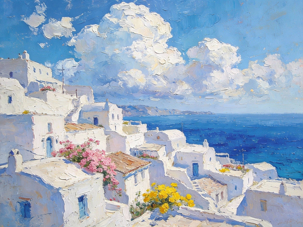 Original Canvas Paintings, Azure Dreams of the Aegean, Small Oil Paintings on Canvas, Palette Knife Artwork, Landscape Oil Paintings, Hand Painted Wall Art