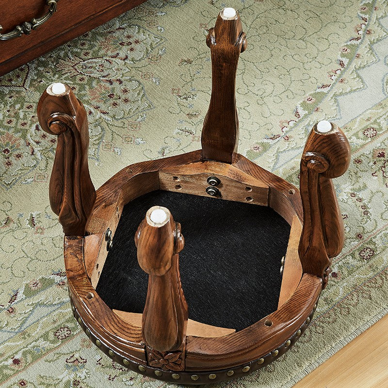 Vintage Round Stool, Solid Wood Ottoman, Genuine Leather Solid Wood Entry Bench, Rubberwood Entry Bench, Vanity Stool