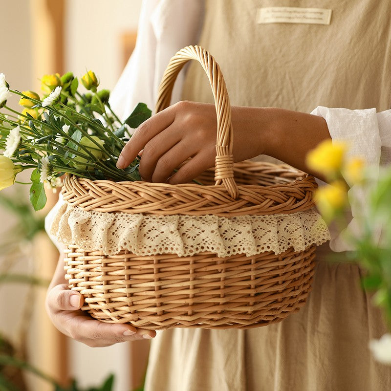 Hand-woven Wicker Storage Basket, Willow Weaving Baskets for Vegetable, Small Picnic Storage Basket with Handle, Natural Fruit Basket, Kitchen Storage Baskets