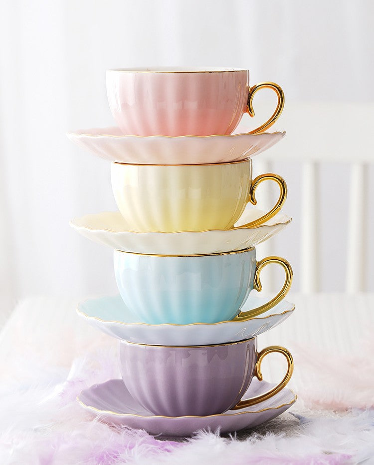Beautiful ceramic tea cups, perfect for serving espresso, cappuccinos, lattes or tea. It has enough space for coffee with milk bubbles, avoiding spilling.