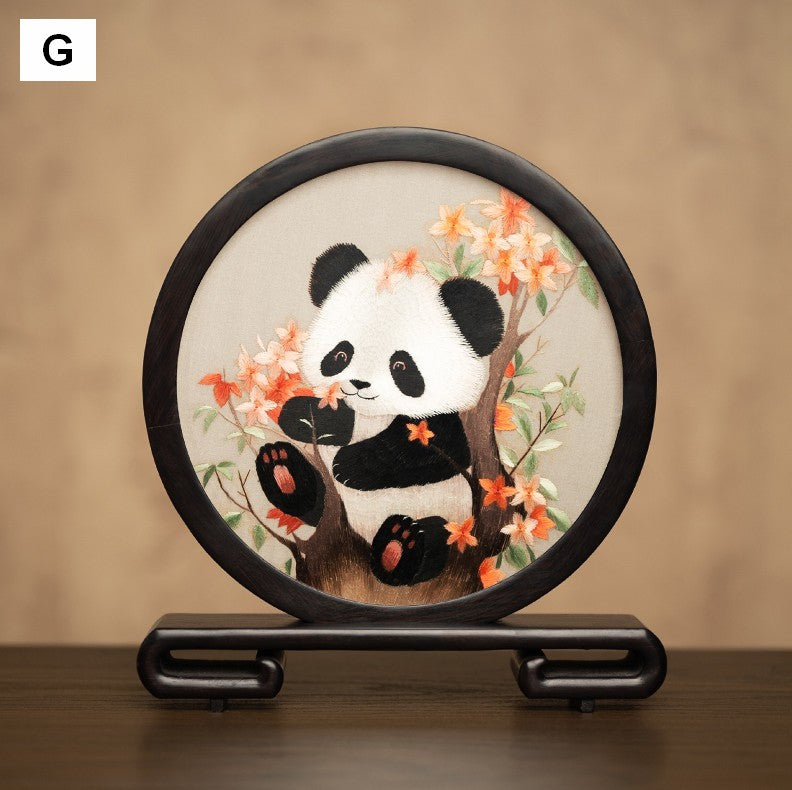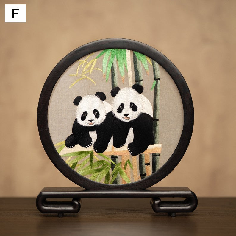 Unique Birthday Gift, Exclusive Business Present Panda Embroidered Decor, Traditional Chinese Suzhou Embroidery Ornament, Premium Souvenir