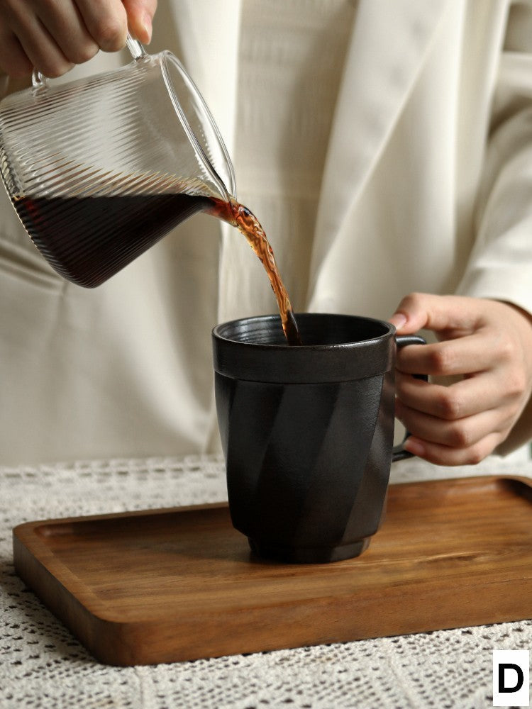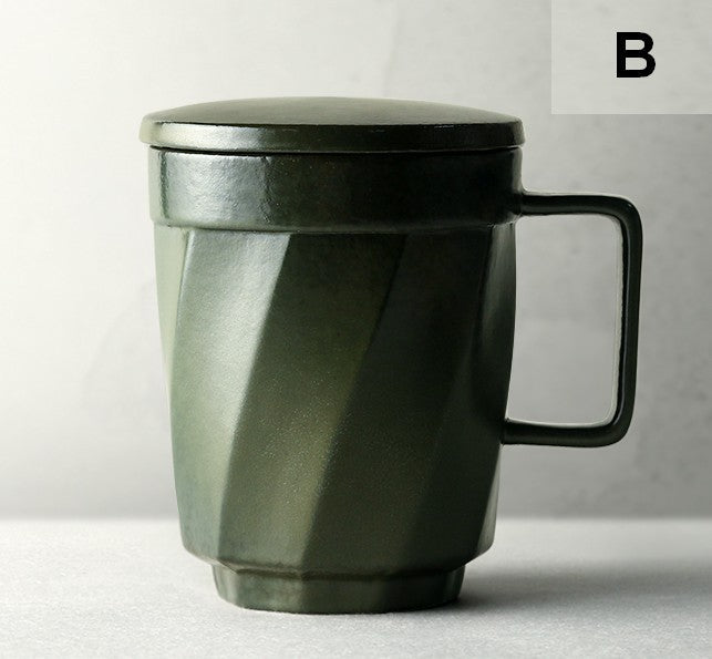 Unique Tea Cup, Large Capacity Coffee Mug with Cover, Large Modern Handmade Pottery Coffee Cup, Creative Brown Green Blue Black Ceramic Coffee Mugs