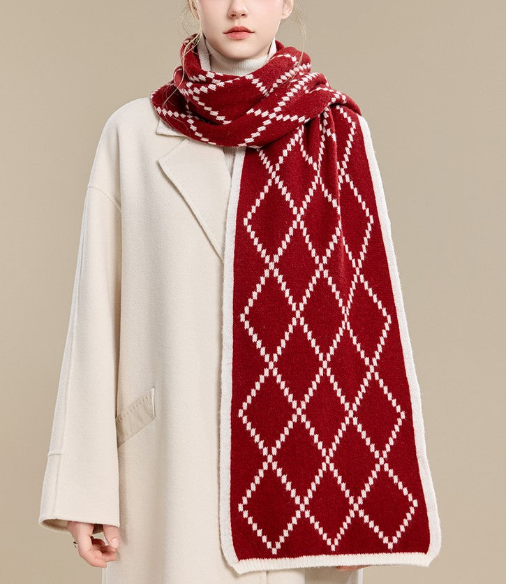 Winter Wool Scarf, Red White Soft Cashmere Scarf for Women, Elegant Wool Scarves, Warm Winter Scarf, Cold Weather Scarf, Red Fashion Scarf, Christmas Gifts for Her, Holiday Scarf